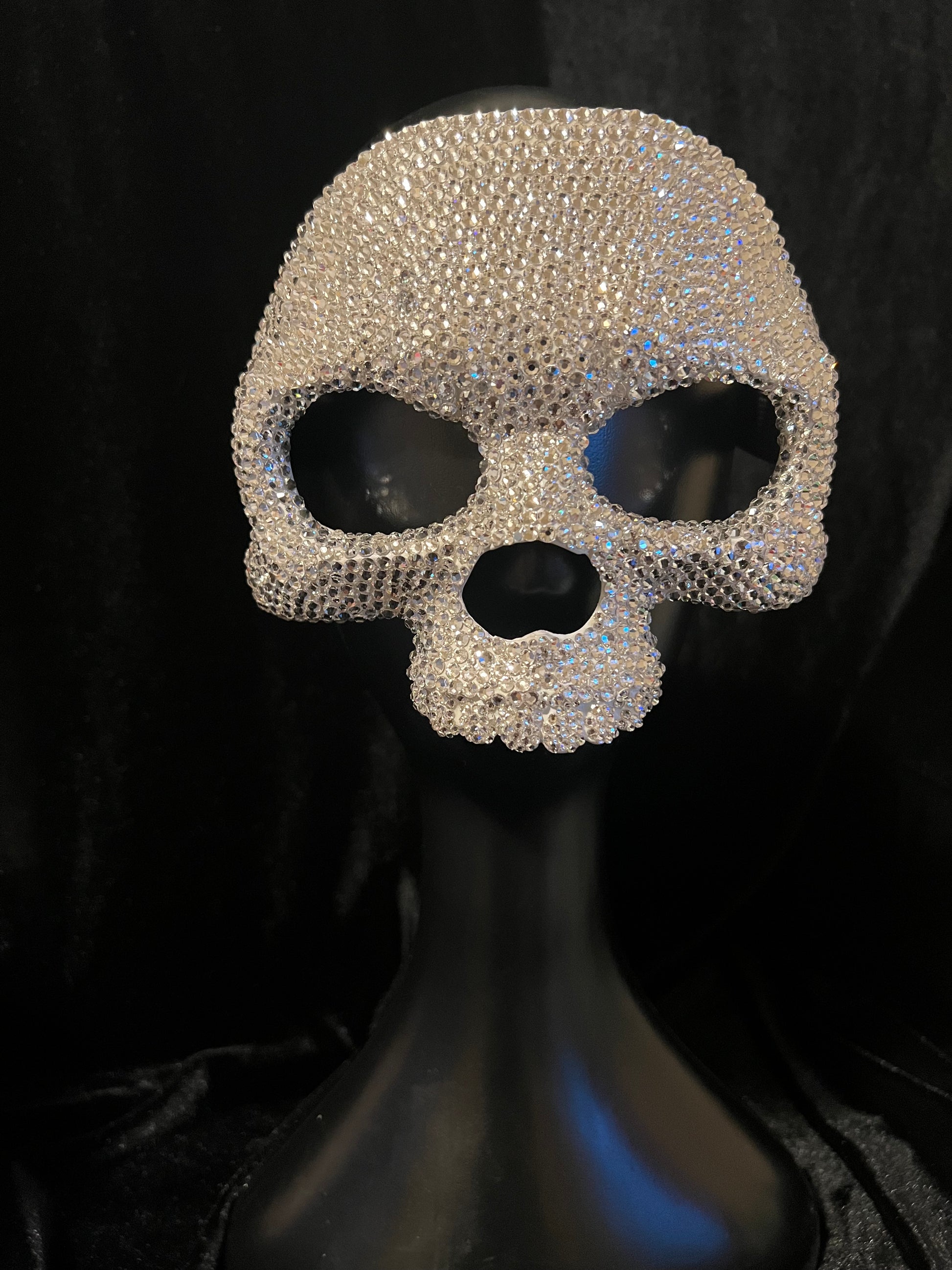 Turn heads and steal the spotlight with this handcrafted unisex skull mask, meticulously adorned with genuine Preciosa crystals for an unmistakable brilliance. Designed to shimmer under any light, this mask blends edge and elegance — perfect for masquerade balls, Halloween soirées, themed galas, or New Year’s Eve celebrations.